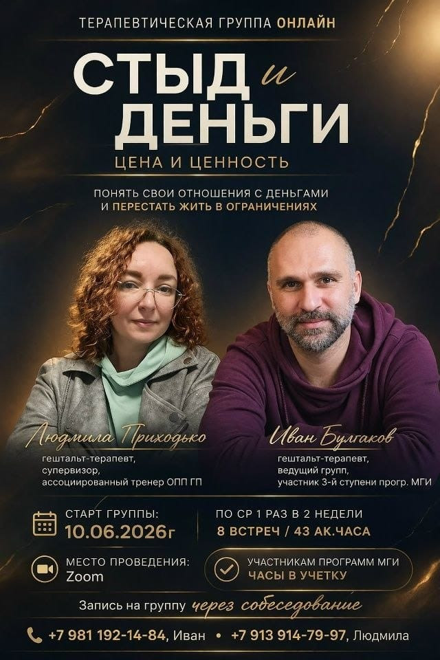 Терапевтическая группа «Стыд и деньги: цена и ценность» (Булгаков Иван, Приходько Людмила)